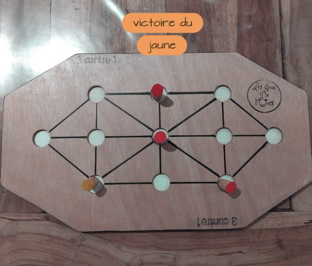 Le jaune gagne s’il échappe aux rouges, c’est-à-dire s’il parvient à se positionner derrière tous les rouges.